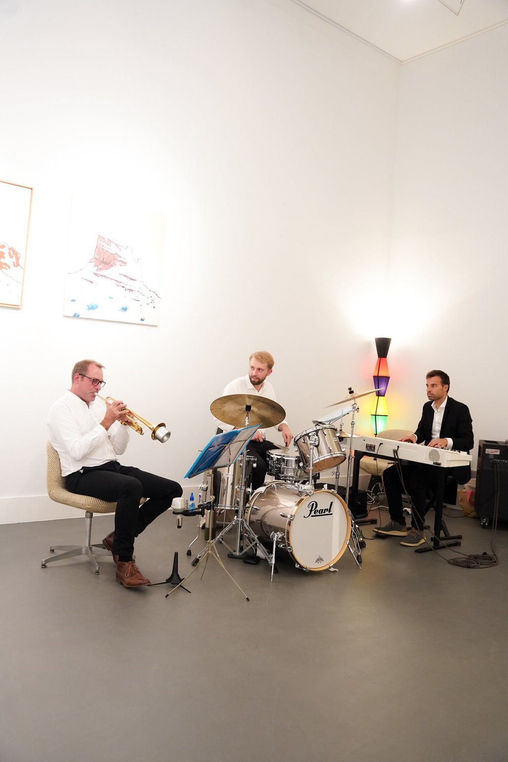 La prestation s’est ensuite poursuivie en extérieur, avec une ambiance jazz élégante et chaleureuse, accompagnant le déjeuner des invités.